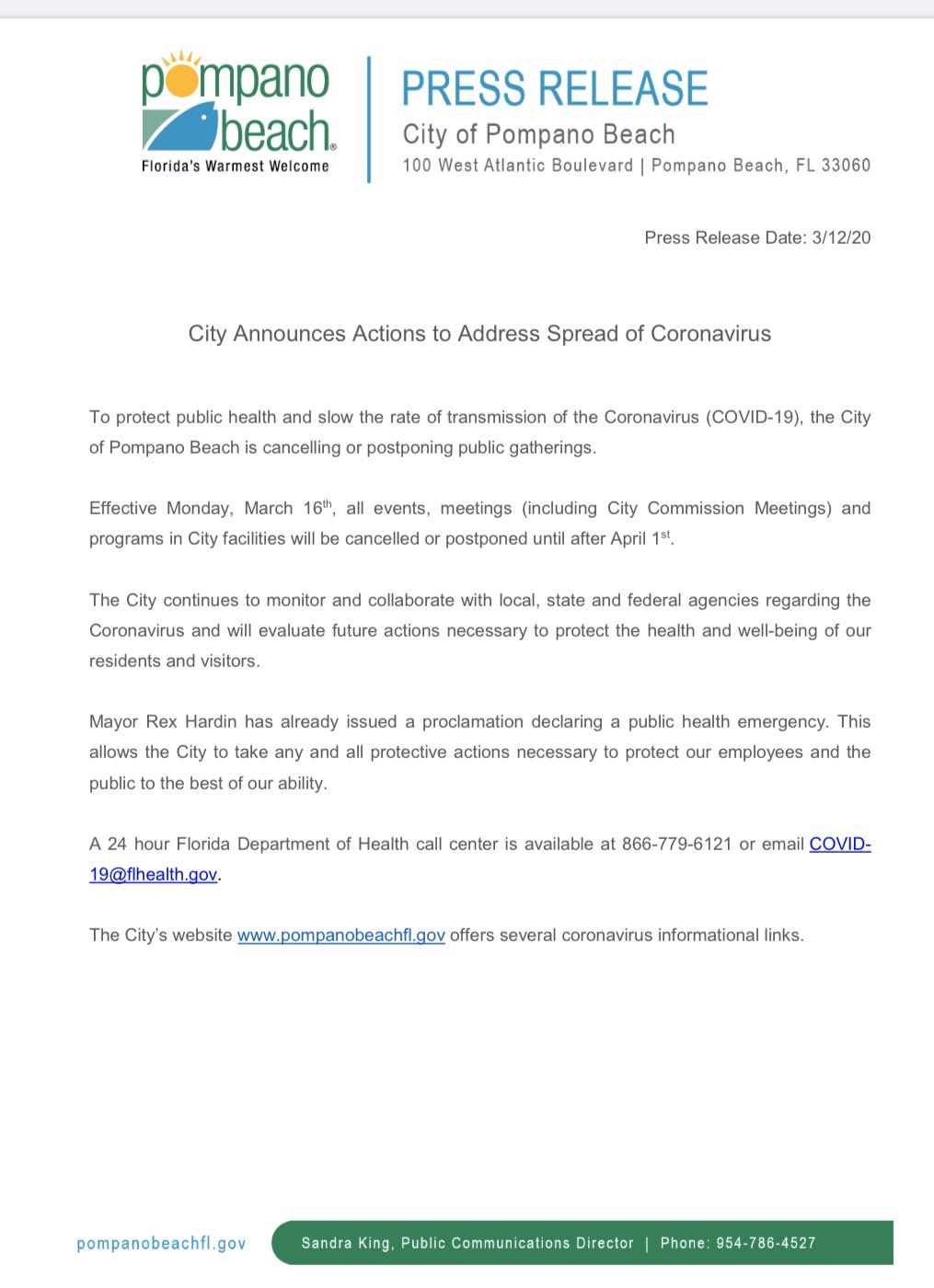 Pompano Beach On Twitter City Announces Actions To Address City Of Pompano Beach Employment